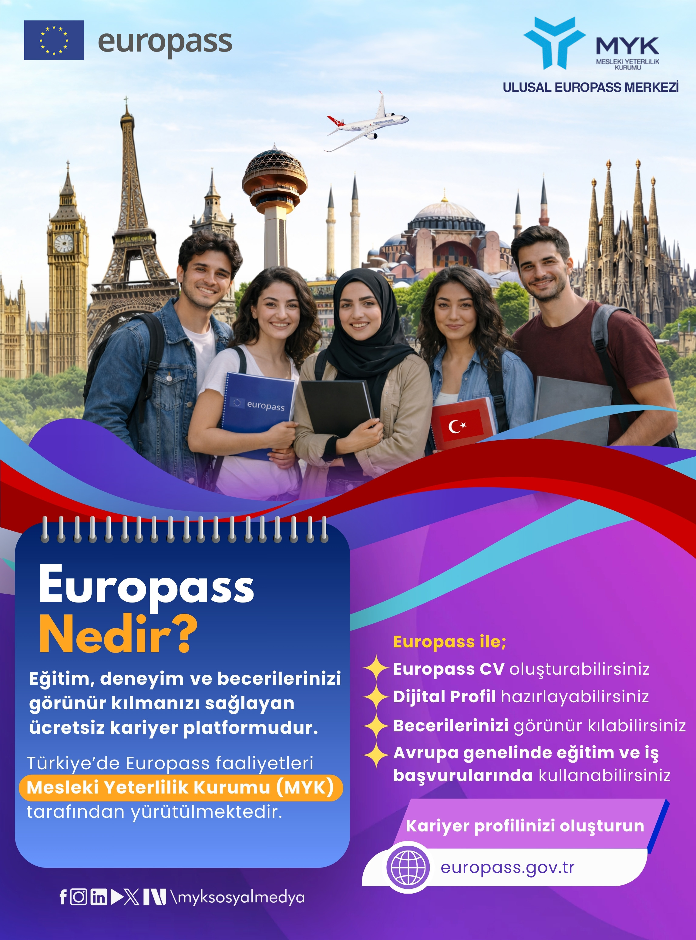 EUROPASS araçlarını kullanmak, kariyer profilinizi oluşturmak ve detaylı bilgiye ulaşmak için: 👉 europass.gov.tr